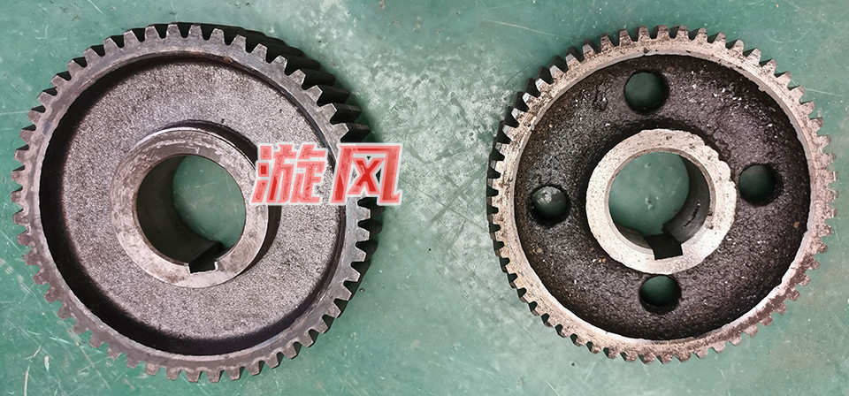 對比照片為原相機拍攝,無PS修圖,實物還原。對比齒軸為我公司在網上采購卷揚機拆機后的對比樣品。
