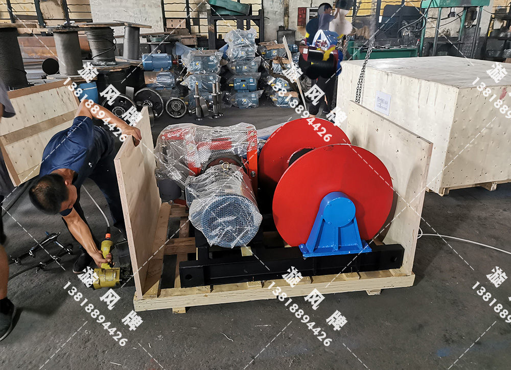 赤峰市8臺5噸卷揚機出口打包裝車送往天津港